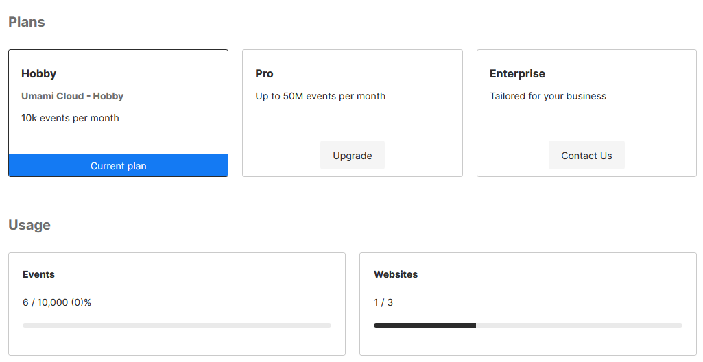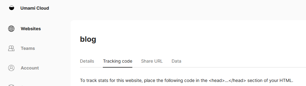 Umami使用 Posted 2023-10-25 Updated 2023-10- 25 By Heisenberg 1~2 min read 官方地址https://analytics.eu.umami.is使用限制一个月1万次的事件,支持三个网站的跟踪,个人用户大概率够用了;使用方法主要依赖网站全局header的跟踪js实现信息的获取的,找到下面的配置想办法扔到全局页面的header里,然后就能看到效果了……效果看起来还不错 Website 实用的小功能 License: CC BY 4.0 Share OLDER Hello world NEWER Matrix聊天IM工具搭建